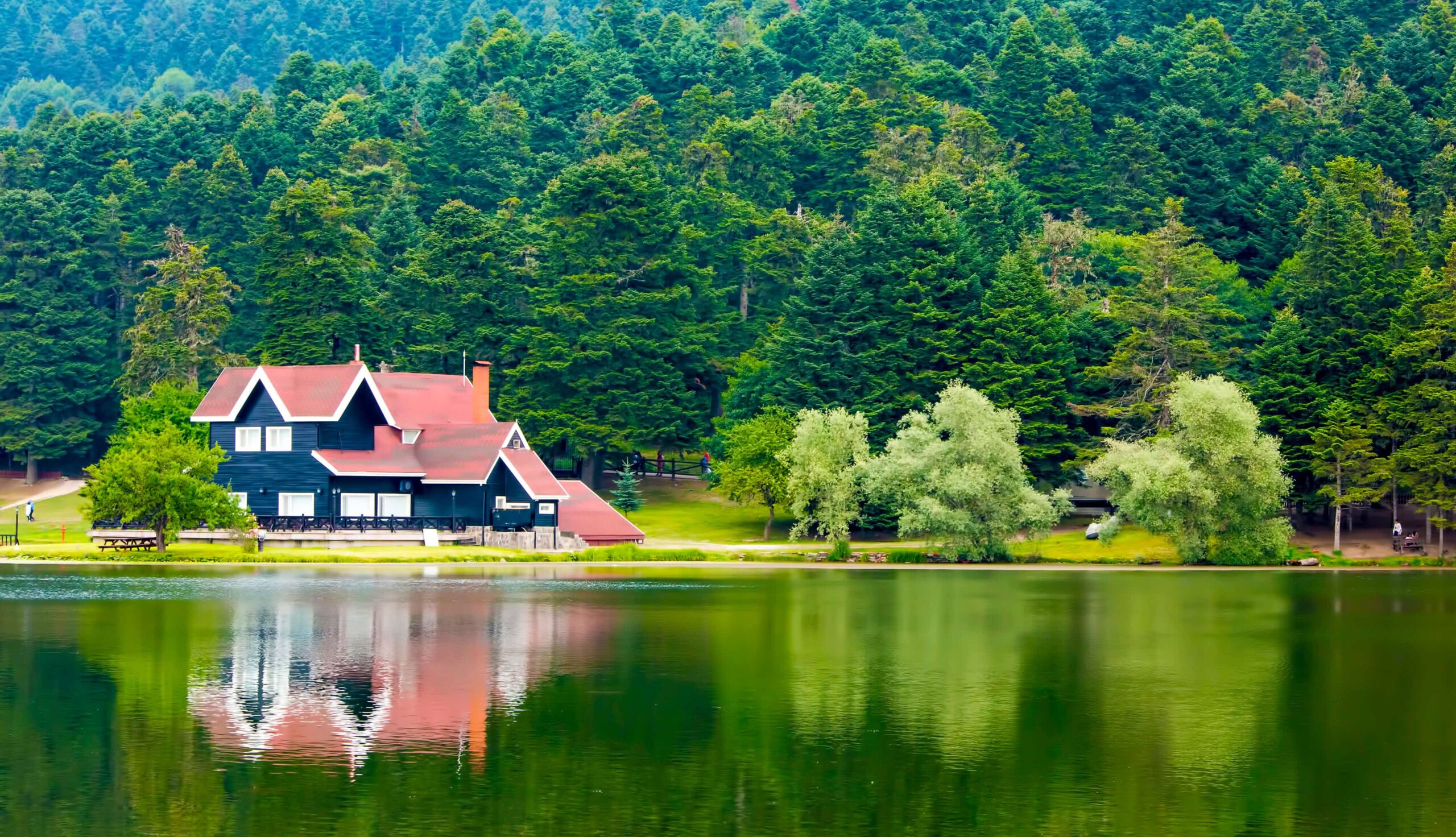 Gölün kıyısındaki ahşap Devlet Konukevi, suya yansımasıyla Bolu’nun belki de en çok paylaşılan fotoğraf karesine dönüşmüş durumda. Etrafında çay bahçeleri ve küçük kafeler var. Kış aylarında kar yağdığında ise görüntü bambaşka bir hal alıyor; beyaz örtü altındaki göl adeta kartpostal gibi görünüyor.